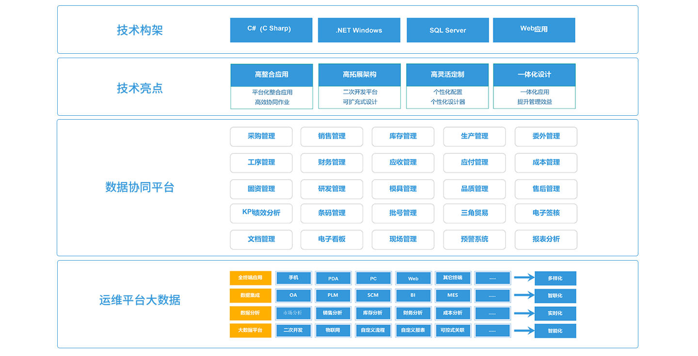 云开体育官方网站登录·(中国)官网入口,ERP系统内蕴含了先进的管理模式,同时亦兼顾了规范化、标准化的作业流程,配以详尽的数据,构筑了企业精细化管理坚实基础,系统细化了每个流程中、每个环节上、每个操作人员的职能,即在组织机制上保证了精细化管理的执行力,从而实现了企业管理精细化